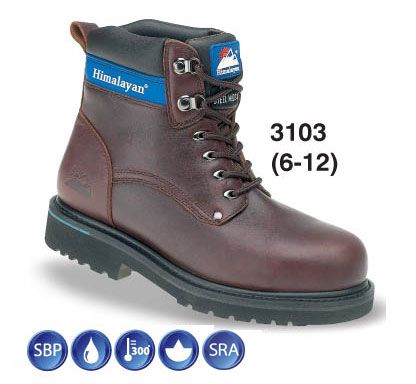 ENISO 20345 SBP Steel Toe Cap / Steel Midsole Quality Leather Uppers; Fabric Linings offering extra Wicking and additional padding; Extra padded Footbed Goodyear Welted Rubber Flex Sole • Oil Resistant • Acid Resistant • Chemical Solvent Resistant • Antic Slip Sole SRA rated • Heat resistant to 300c Outsole Slip Resistance BS EN ISO 20344:2004/A1:2007 (5.18); Tested on Ceramic Tile/Sodium Lauryl - Heel part 0.28; Flat Contact 0.32;